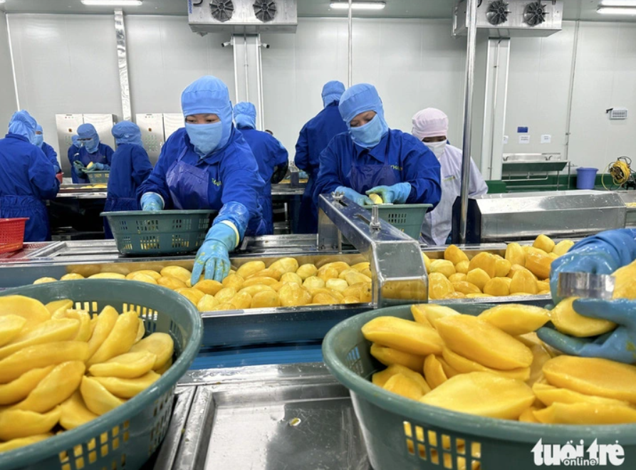 Chế biến xoài tại Nhà máy chế biến trái cây Nova Thabico - Ảnh: ĐẶNG TUYẾT