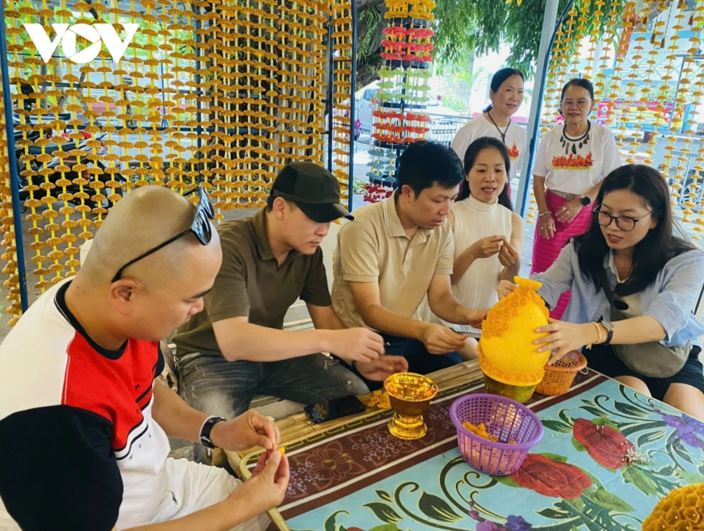 Du khách Việt Nam trải nghiệm làm nến tại một ngôi chùa ở Thái Lan. Ảnh: Hà Phương