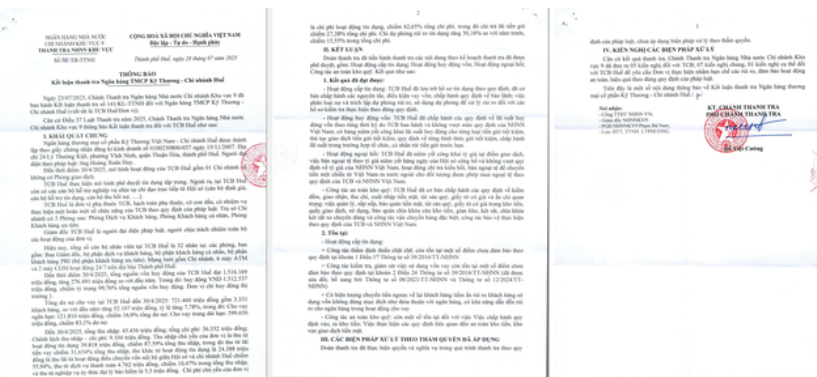 Ngày 28/7, Thanh tra Ngân hàng Nhà nước Khu vực 9 thông báo kết luận thanh tra đối với Ngân hàng TMCP Kỹ thương chi nhánh Huế, qua đó chỉ ra những mặt làm được và các tồn tại, hạn chế.