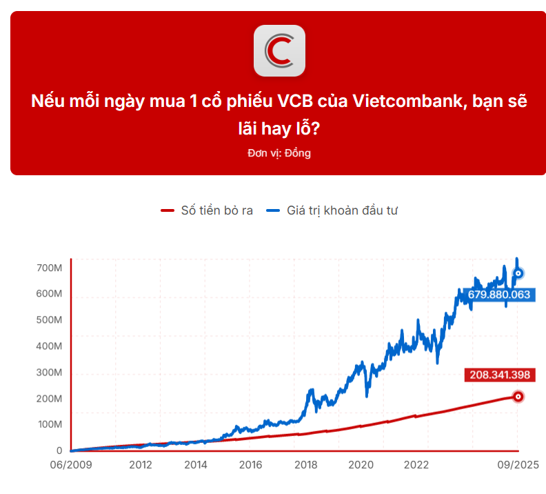 VCB: Mỗi ngày mua 1 cổ phiếu của ngân hàng lớn nhất Việt Nam, lời lãi bao nhiêu sau 16 năm? - Chi tiết bài viết | Vietcap AI News