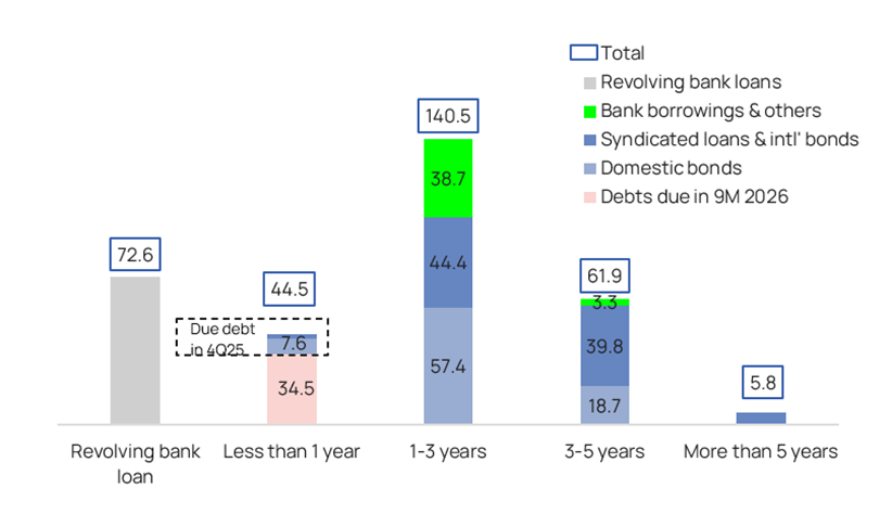 Figure 2: VIC’s total debt breakdown by maturity (VND tn) as of end-Q3 2025